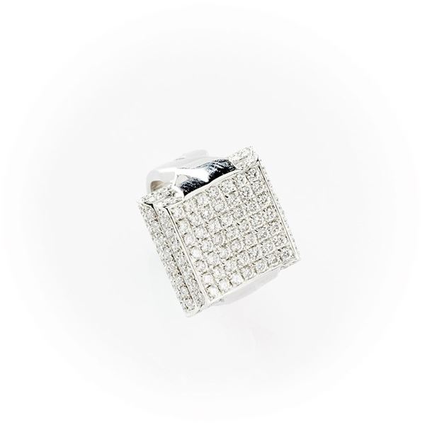 Anello a doppio cuscino di pavè di diamanti bianchi taglio brillante