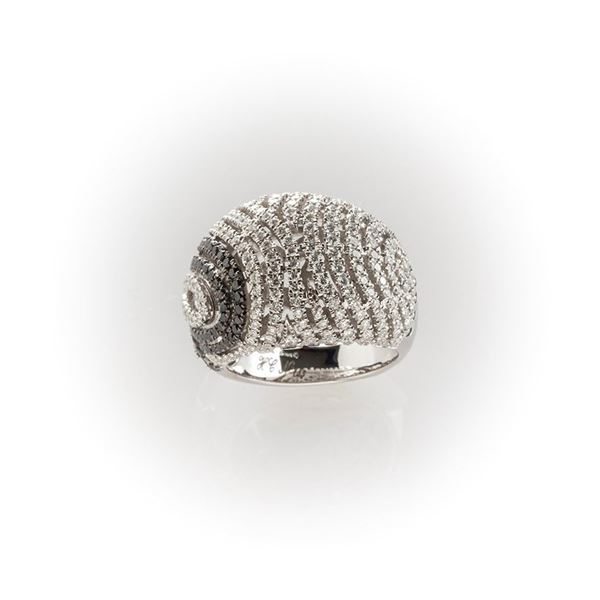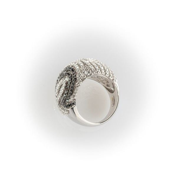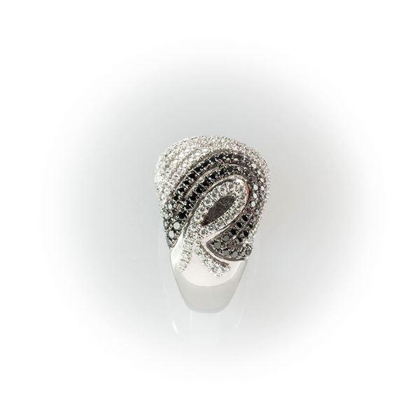 Anello a fascia Recarlo in oro bianco con pavè diamanti bianchi taglio brillante e diamanti neri taglio rotondo, ad evidenziare l'iconica "R" [..]