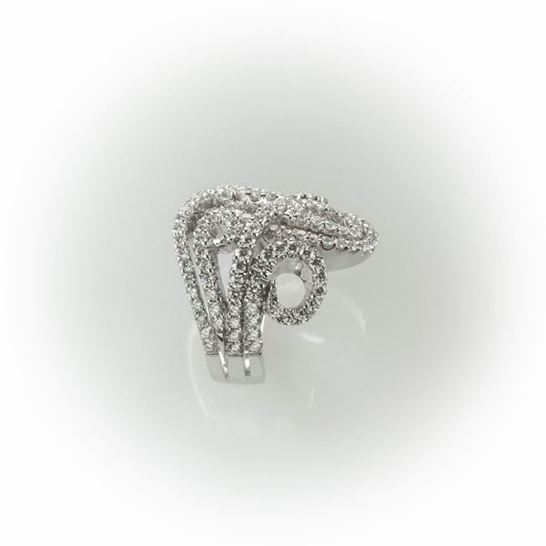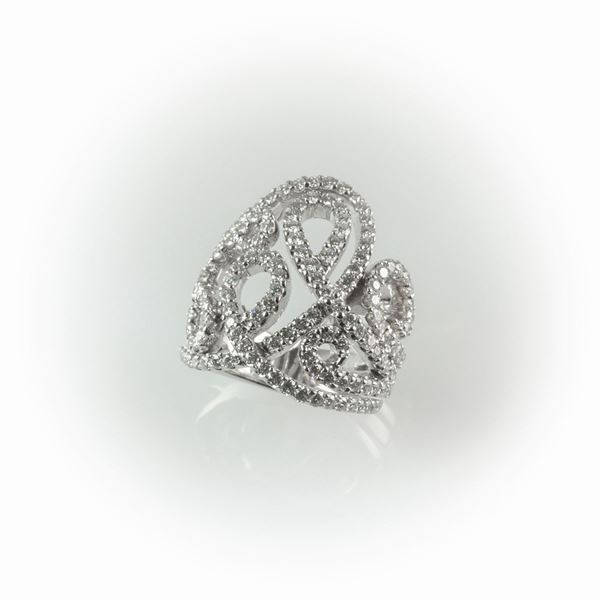 Anello a fascia Recarlo realizzato in oro bianco e fantasia diamanti