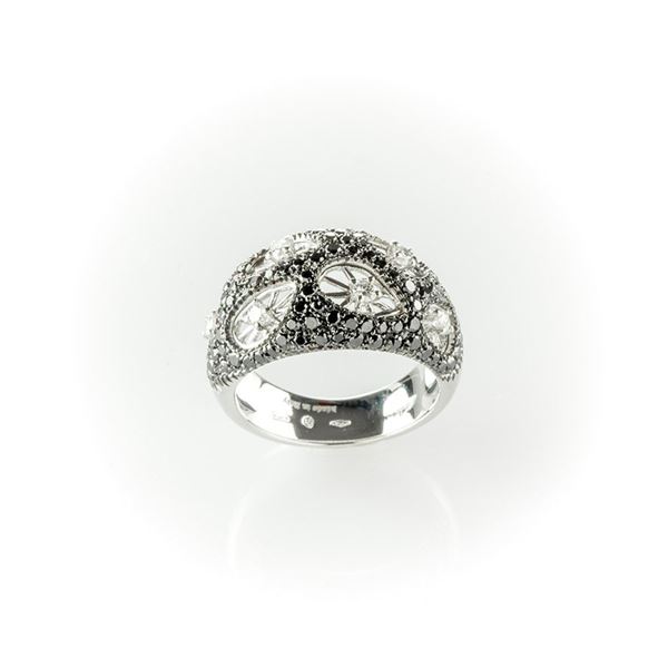 Anello a fascia Salvini in oro bianco con particolare manifattura costituita da diamanti bianchi taglio brillante inseriti in inserti forati [..]