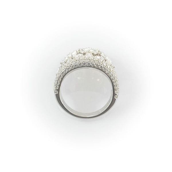 Anello Corona Gismondi in oro bianco con pavè diamanti bianchi taglio brillante e diamanti a goccia