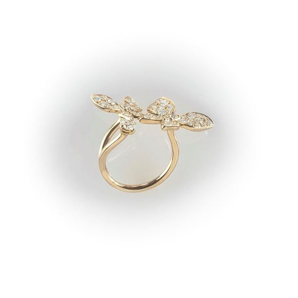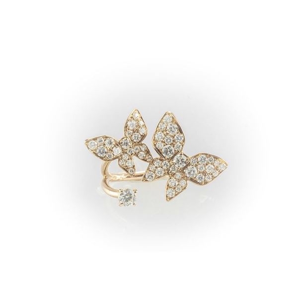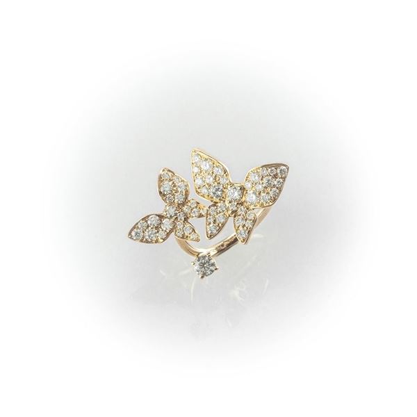 Anello fantasia in oro rosa con farfalle impreziosite da diamanti taglio brillante