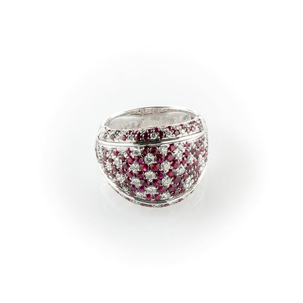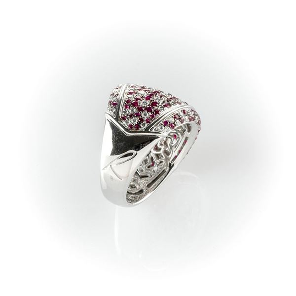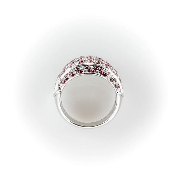 Anello Recarlo a fascia in oro bianco con pavè misto di rubini e diamanti
