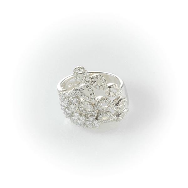 Anello Recarlo in oro bianco realizzato in una fantasia di gocce e pavè di diamanti bianchi taglio brillante