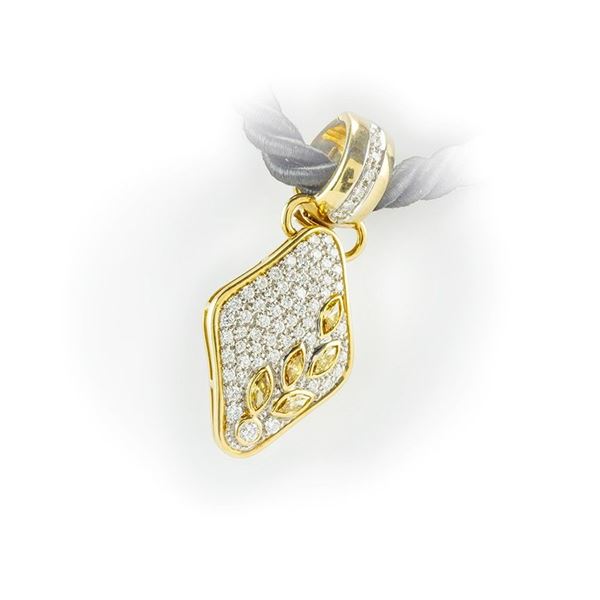 Ciondolo in oro giallo 18 kt, diamanti taglio brillante e diamanti fancy yellow taglio navette.