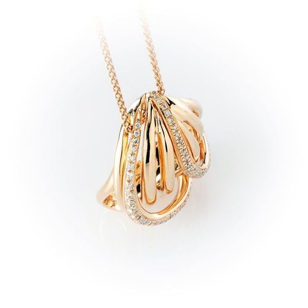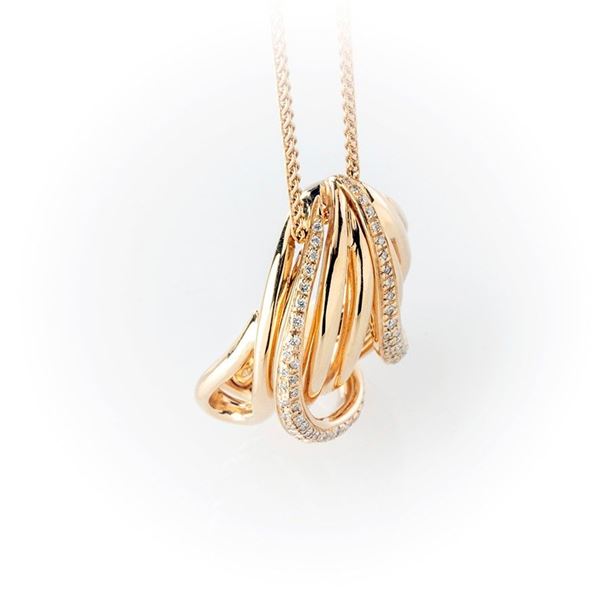 Girocollo in oro rosa Recarlo con ciondolo con movimento di pavè di diamanti lungo montatura a filo. Catenina regolabile su più dimensioni.