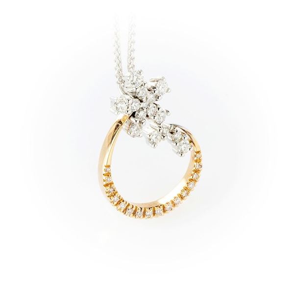 Girocollo Recarlo in oro bianco con ciondolo in oro rosa a tema floreale impreziosito da diamanti brillante