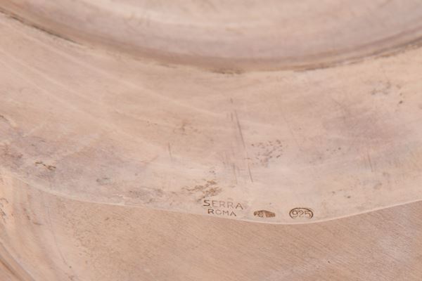 Lotto di 8 piatti da dessert in argento dal profilo sagomato con bordo cesellato