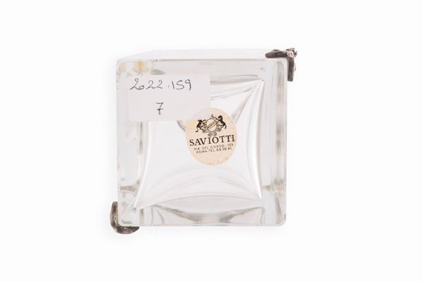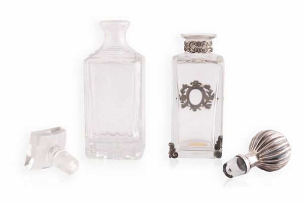 Lotto di due bottiglie da Whisky in cristallo. Unancon tappo e inserti in Sheffield