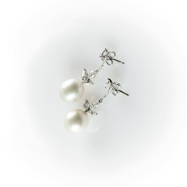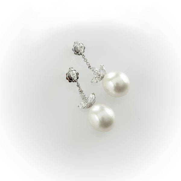 Orecchini pendenti Recarlo con diamanti taglio navette e perle australiane
