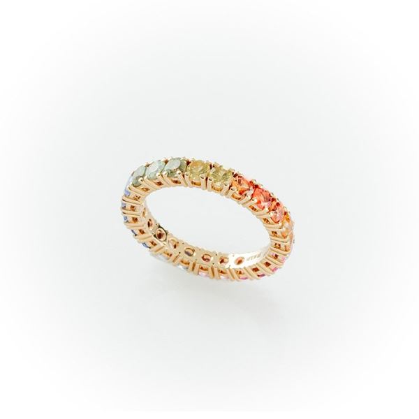 Veretta girodito Gismondi con zaffiri di diverso colore taglio rotondo