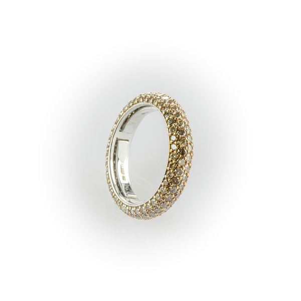 Veretta girodito multimisura Crieri realizzata in oro bianco con pavè di diamanti fancy brown taglio brillante