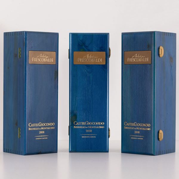 Lotto di 3 bottiglie Magnum in confezioni di legno originali Brunello di Montalcino "Castel Giocondo" Frescobaldi