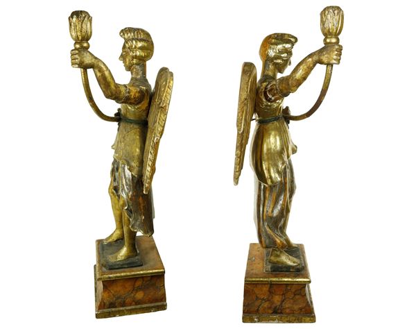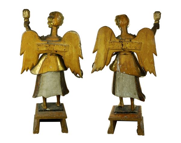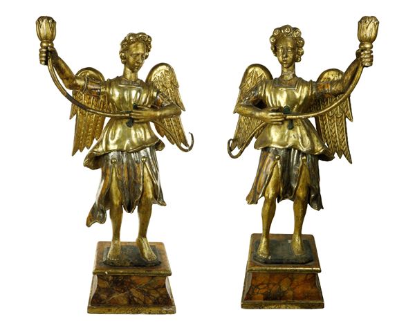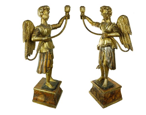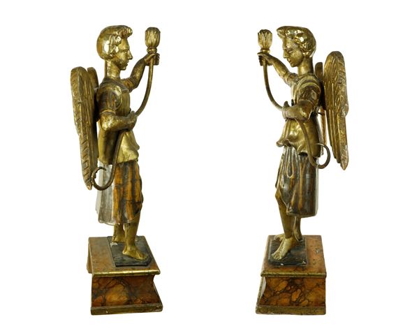 Coppia di angeli tedofori in legno intagliato e dorato, Centro Italia, XVII secolo