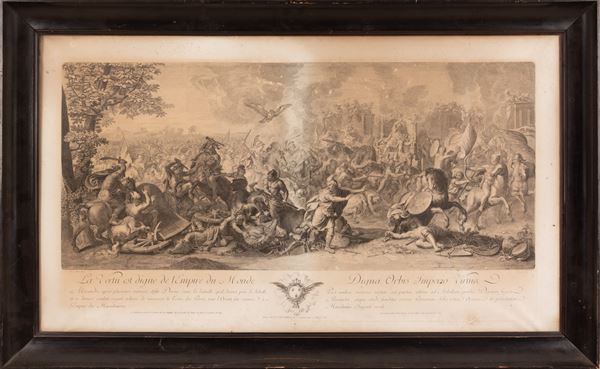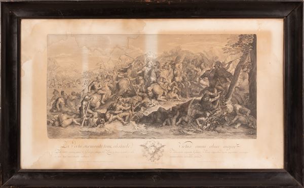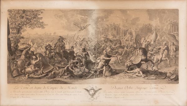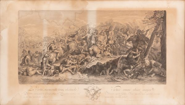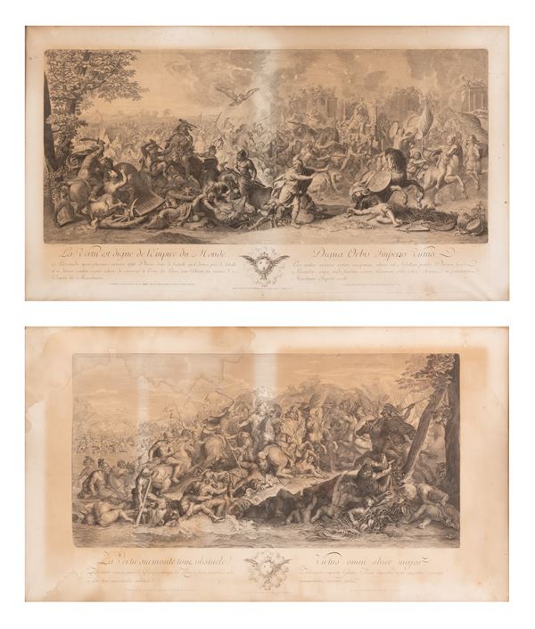 Coppia di incisioni di scuola francese su disegno di Charles Le Brun