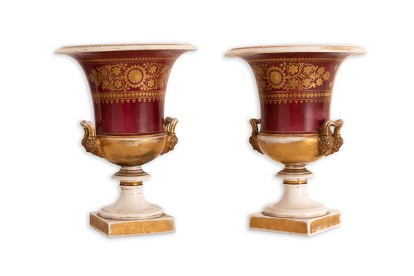 Coppia di vasi medici in porcellana policroma e oro, XIX secolo