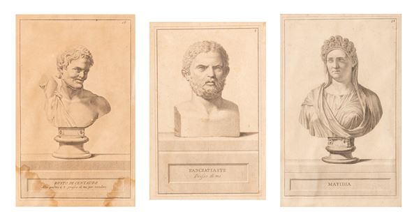 Lotti di tre incisioni raffiguranti ritratti Greci e Romani