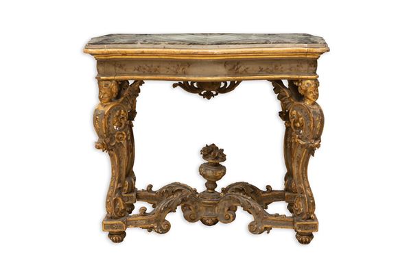 Lotto composto da consolle e specchiera riccamente intagliati, dipinti e laccati, Roma, XVIII secolo