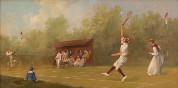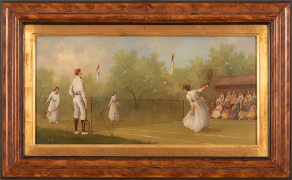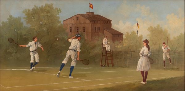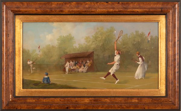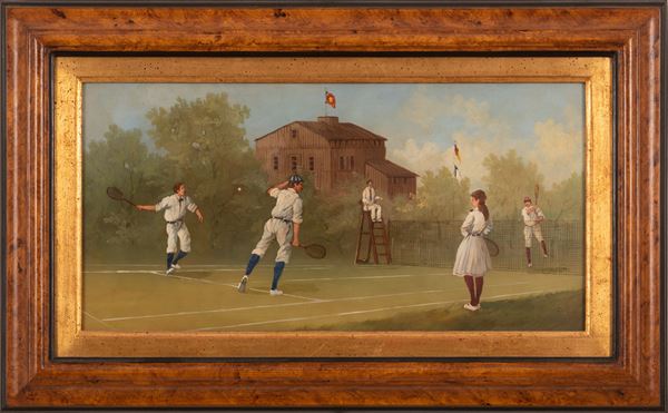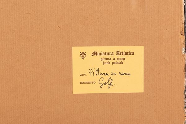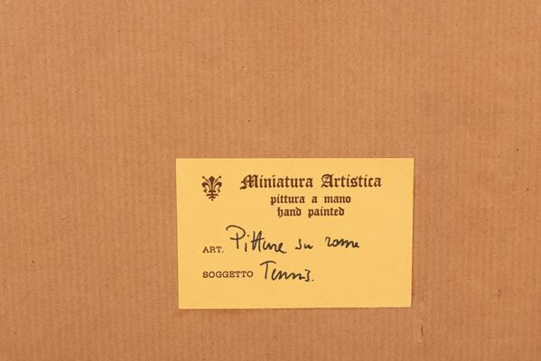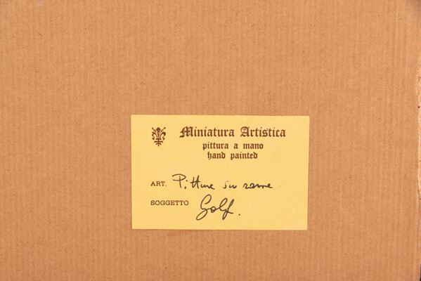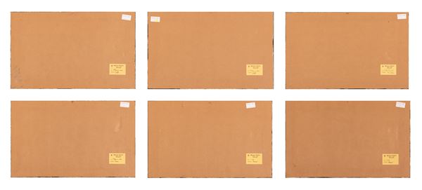 cm 20x40 con cornice 33x53Tre opere raffigurano giocatori e giocatrici di tennis, le altre tre giocatori di golf.