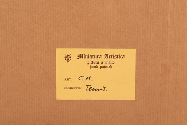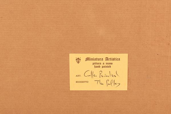 Tutti i dipinti sono in cornice con doppia modanatura dorata e in finta radica con bordi esterni ebanizzati.