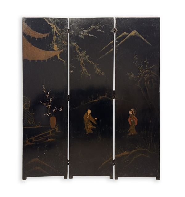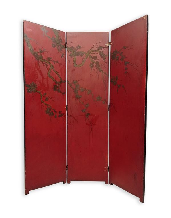 Paravento Giapponese in legno laccato dipinto su due fronti