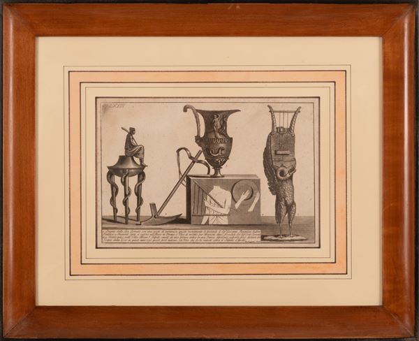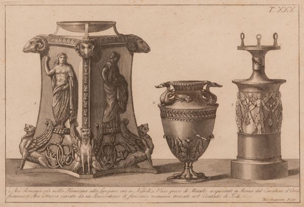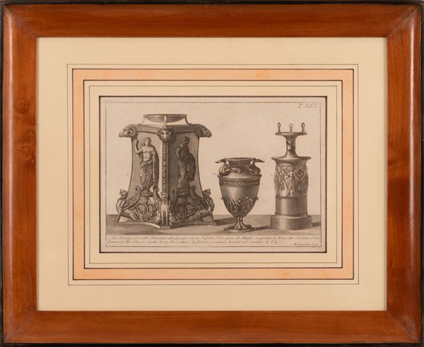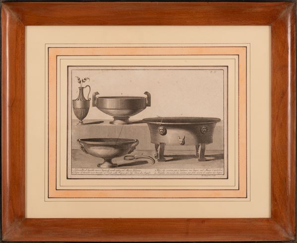 cm 35x45 con cornice 45x56Ogni incisione è corredata una didascalia che illustra gli oggetti indicando, a volte, anche la loro collocazione al tempo della realizzazione.