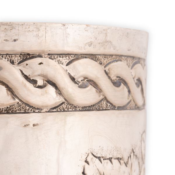 Secchiello da champagne in argento sbalzato a mano con frutta