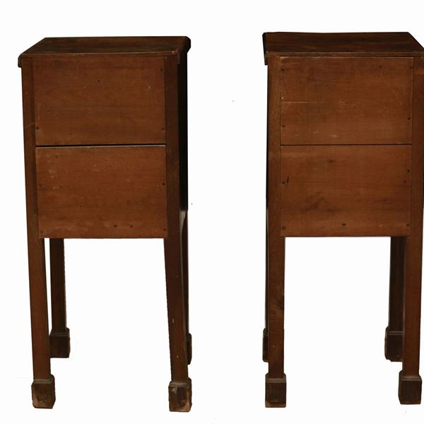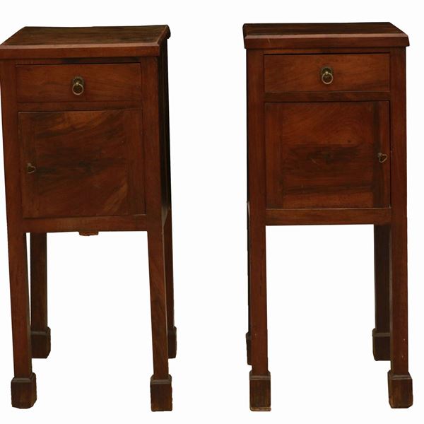 Coppia di comodini Impero in noce con cassetto e sportello sul fronte
