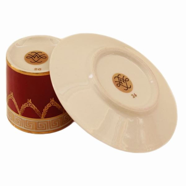 Coppia di tazzine Sevres rosse e oro