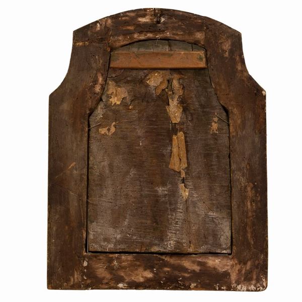 Gesù al pozzo. Gruppo di sculture lignee in cornice mistilinea dorata a due ordini di modanature. Napoli, XVII secolo