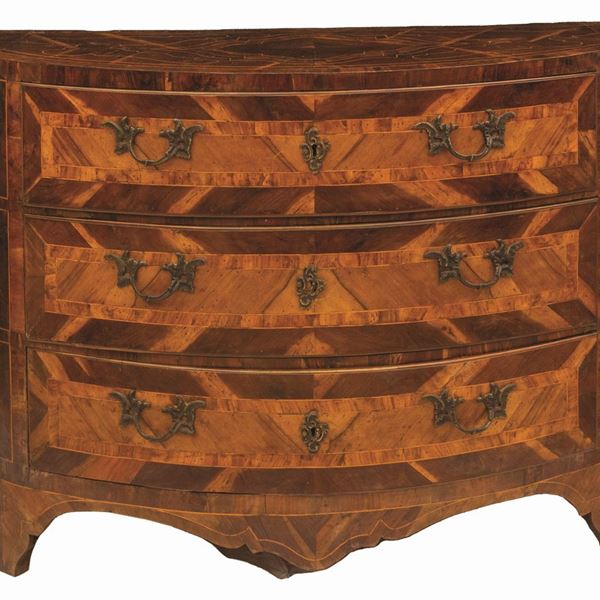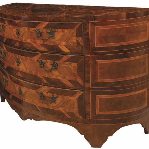 Comò demilune a 3 cassetti. Sicilia, XVIII secolo.