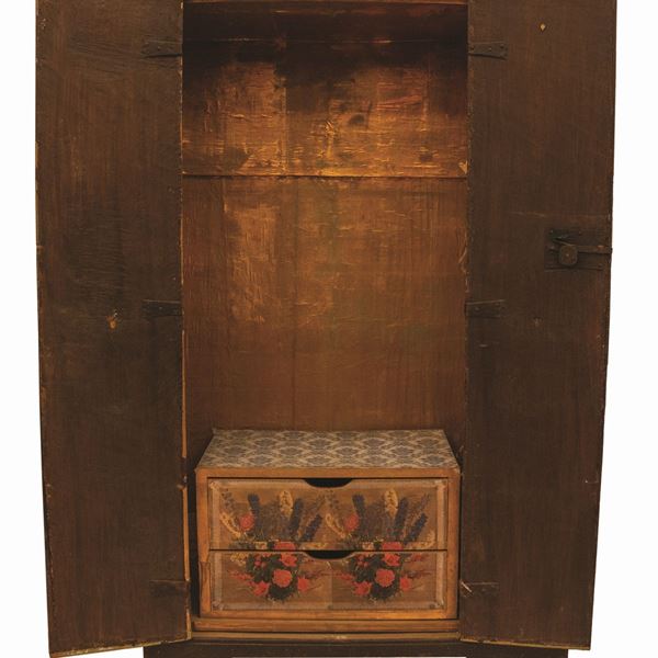 Scantonato sul lato sinistro. Sportello laterale sul lato destro a sei ripiani.
