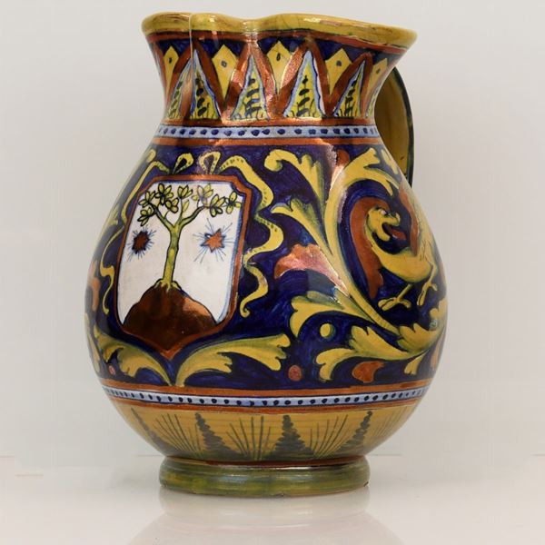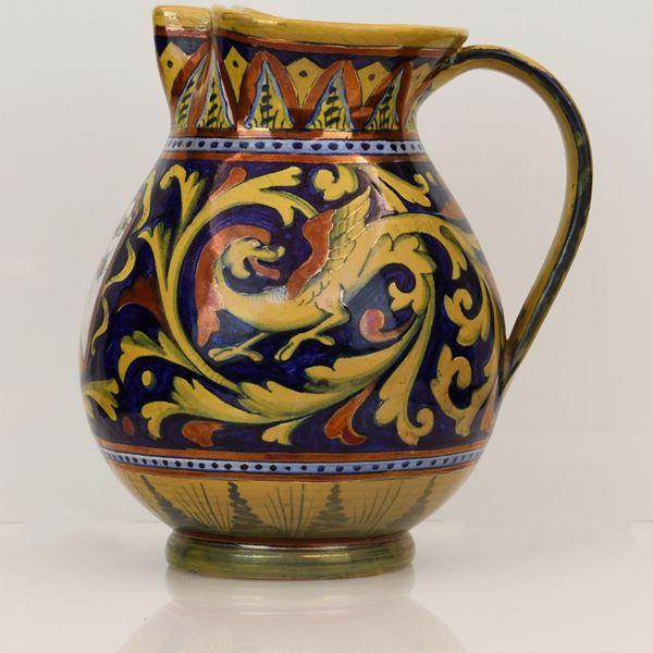 Brocca in ceramica dipinta a lustro Gualdo Tadino siglata Paolo Rubboli