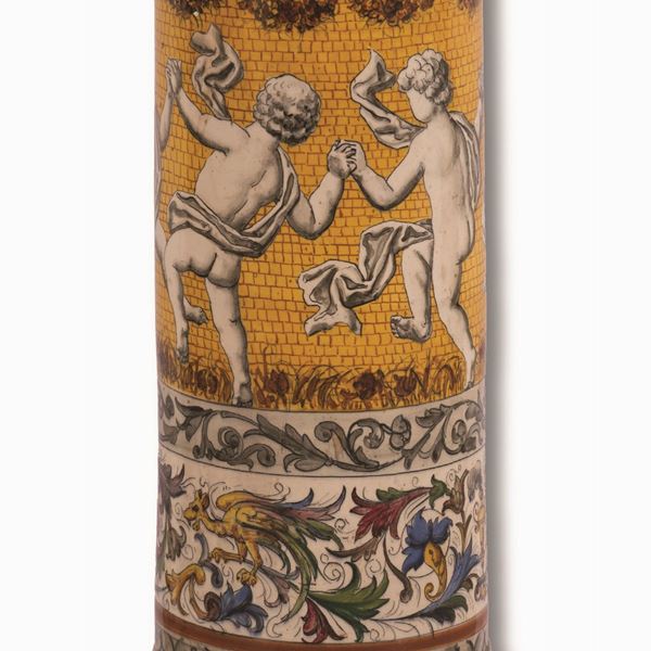 Colonna toscana in maiolica decorata con angeli portafestoni