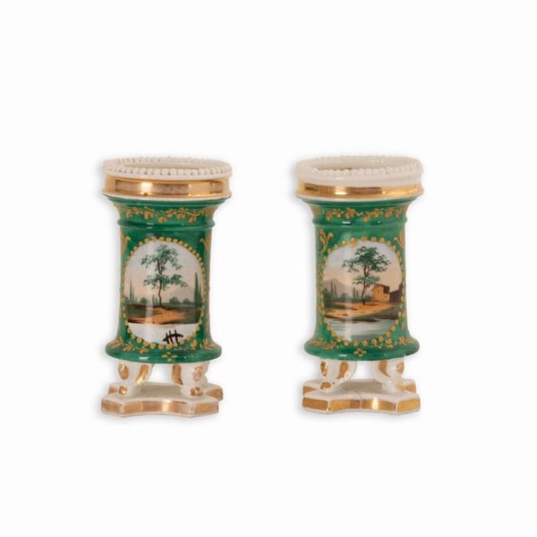 Lotto di due vasetti e un portapenne in ceramica di Capodimonte