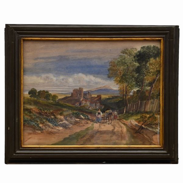 Paesaggio agreste (Ciociaria?) con figure di viandanti