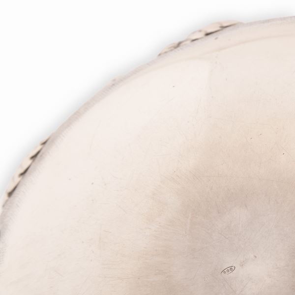 Scatola in argento Buccellati porta bon bon con coperchio cesellato con foglie di fragola