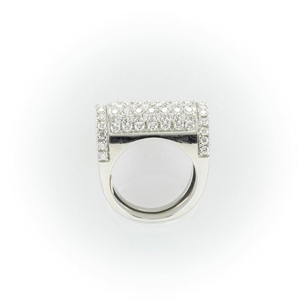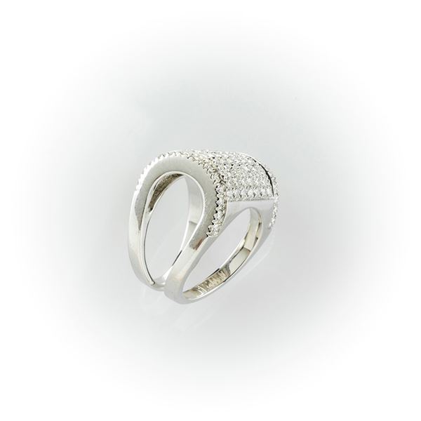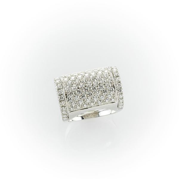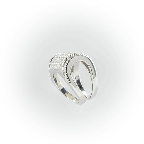 Anello bauletto in oro bianco con pavè di diamanti bianchi taglio brillante