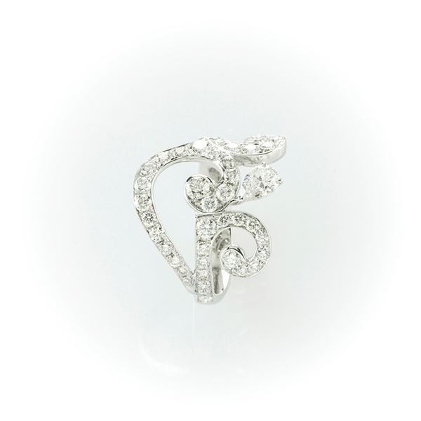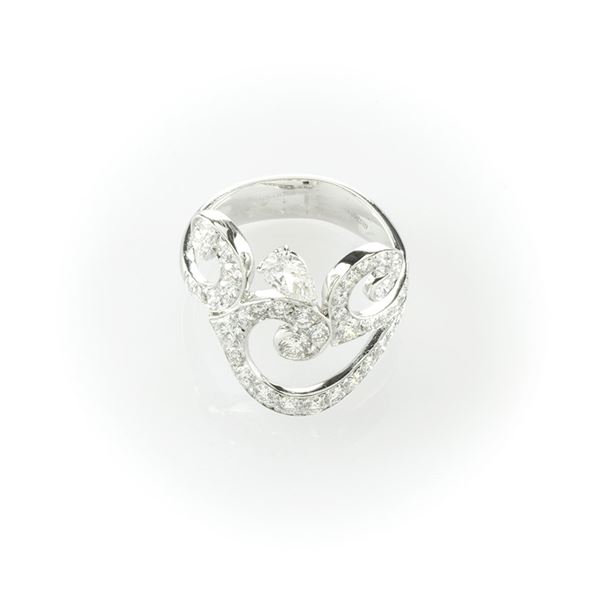 Anello fantasia Gismondi in oro bianco con diamanti taglio brillante e diamante a goccia