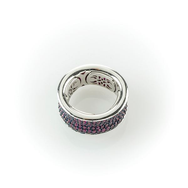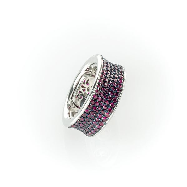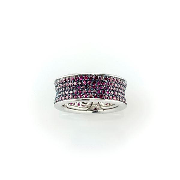 Anello pavè multimisura Crieri realizzato in oro bianco e rubini taglio rotondo