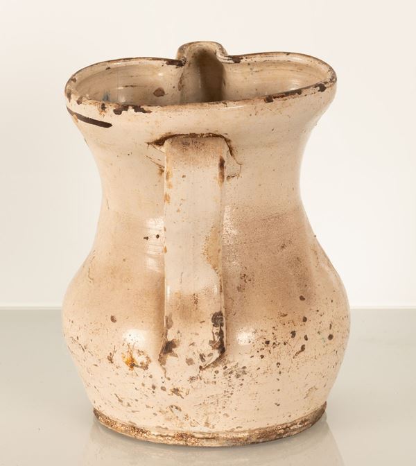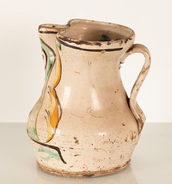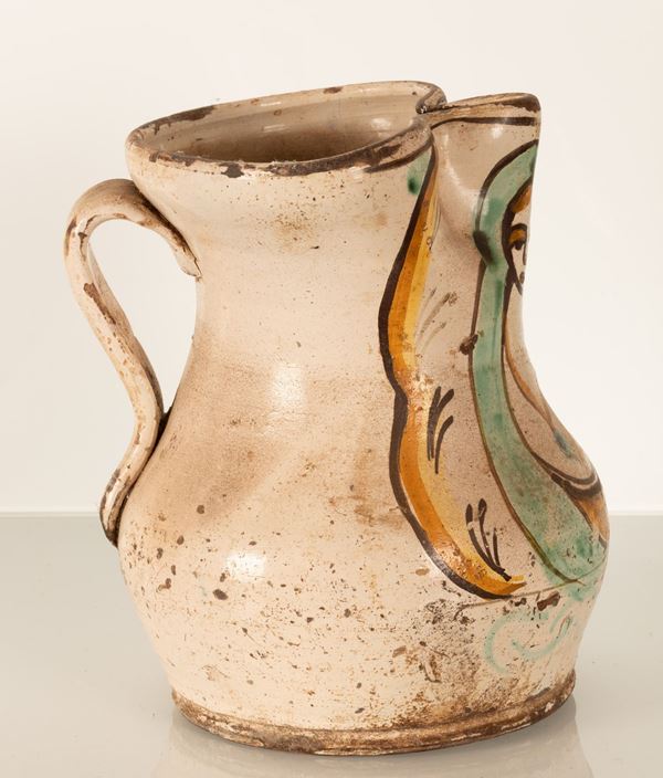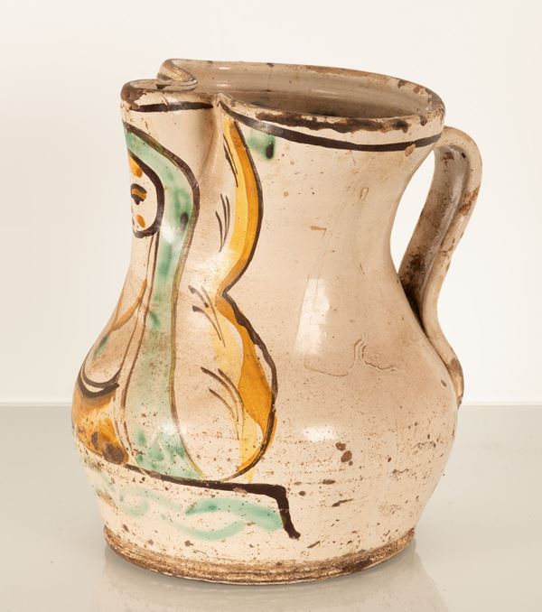 Antica brocca con dipinto al fronte Madonna in verde e manganese. Manifattura Bussi sul Tirino della fine del XVIII secolo