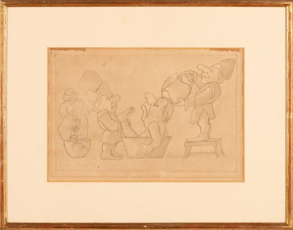 Antico disegno a matita caricaturale del XV secolo