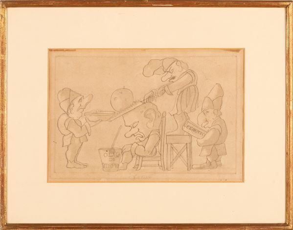 Antico disegno a matita caricaturale del XV secolo