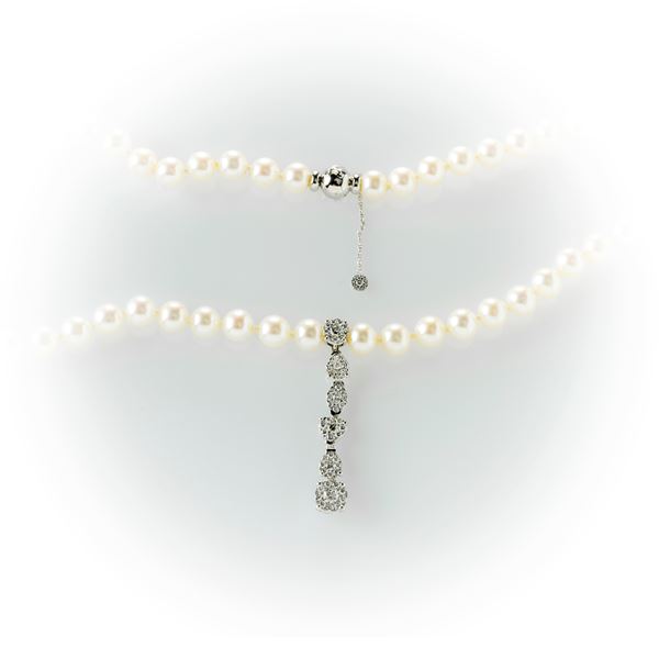 Collana di perle coltivate giapponesi Recarlo con ciondolo centrale costituito da sei elementi con diamanti taglio rotondo, taglio a goccia, [..]