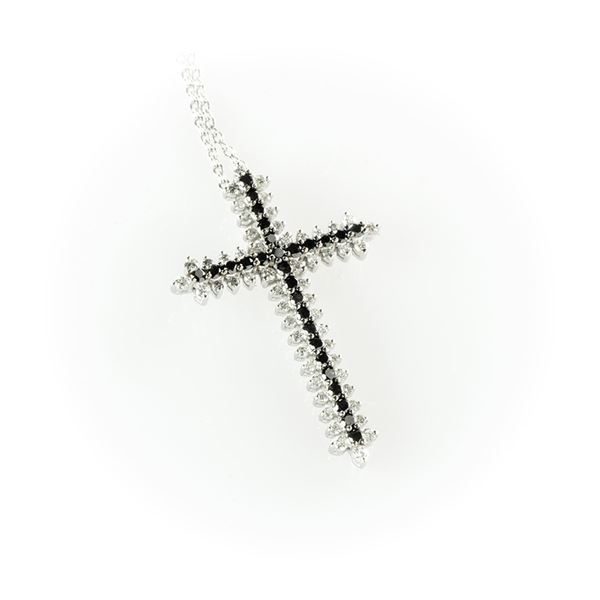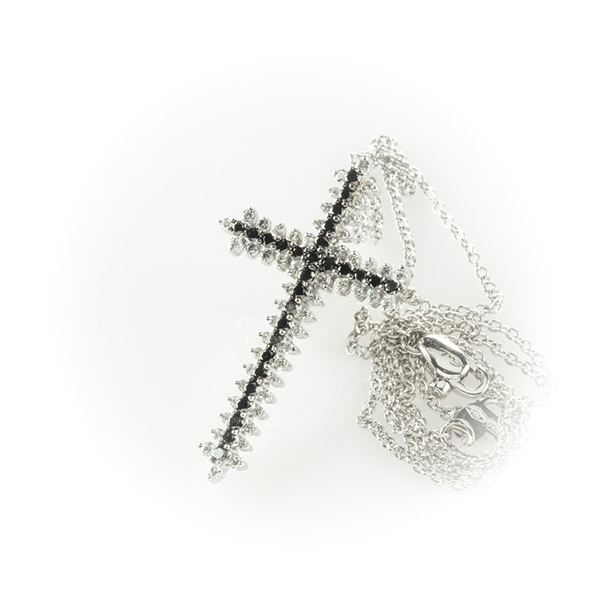 Collier Salvini con ciondolo a croce con diamanti bianchi taglio brillante e diamanti neri taglio rotondo