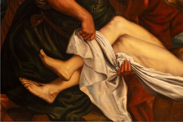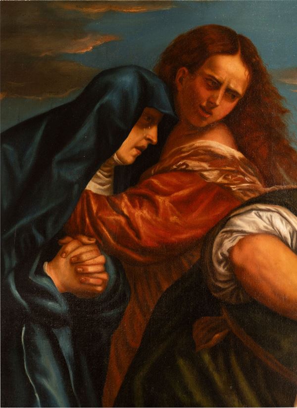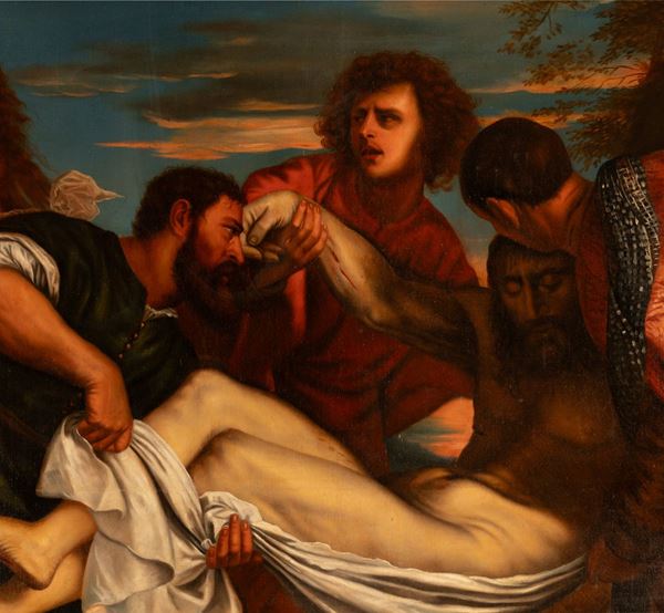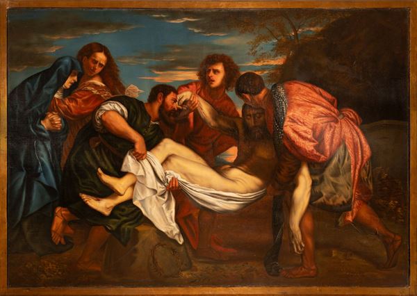 cm 151x219; con cornice cm 162,5x230Copia del celebre dipinto di Tiziano Vecellio e conservato nel Museo del Louvre a Parigi.