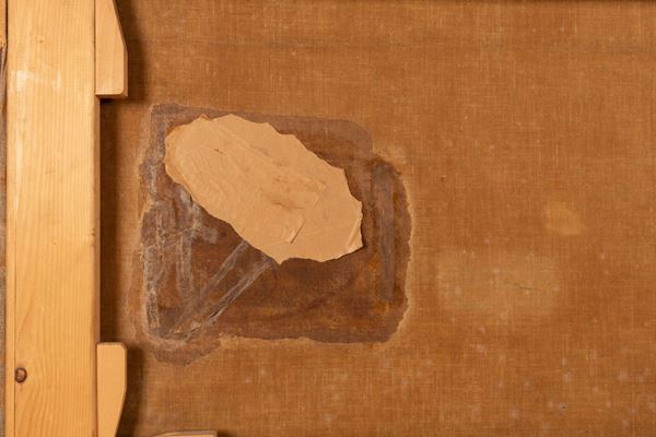 In basso a destra è visibile risarcimento dopo la foderatura come da foto.