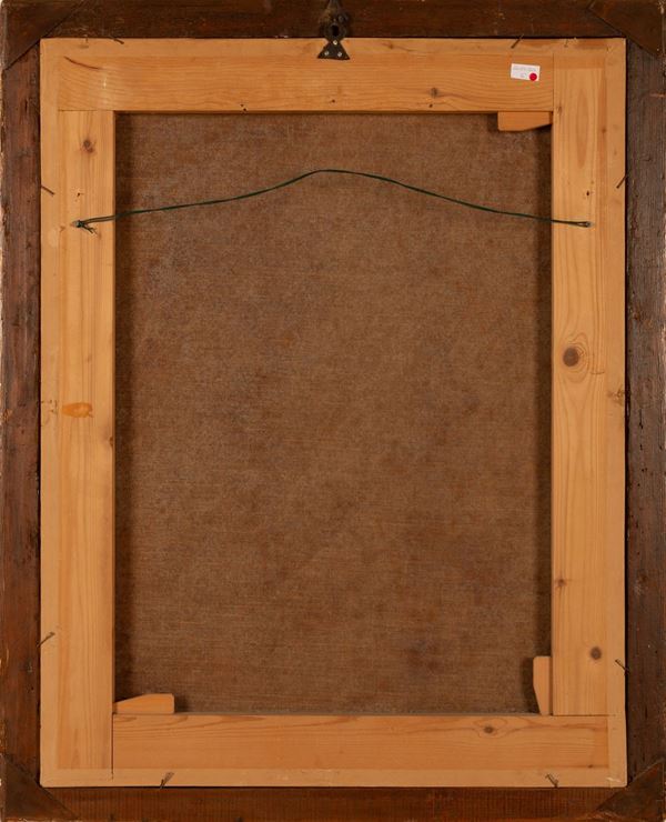 Cornice intagliata e dorata e con la parte centrale ebanizzata.