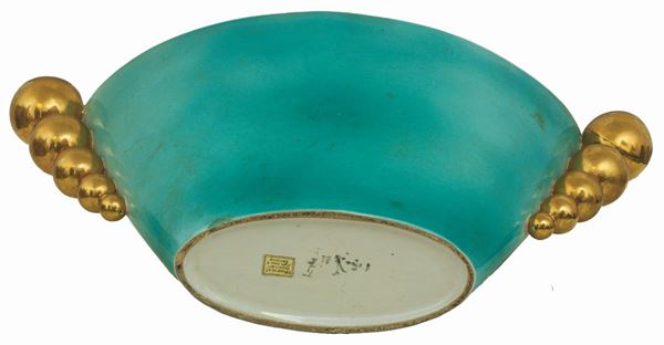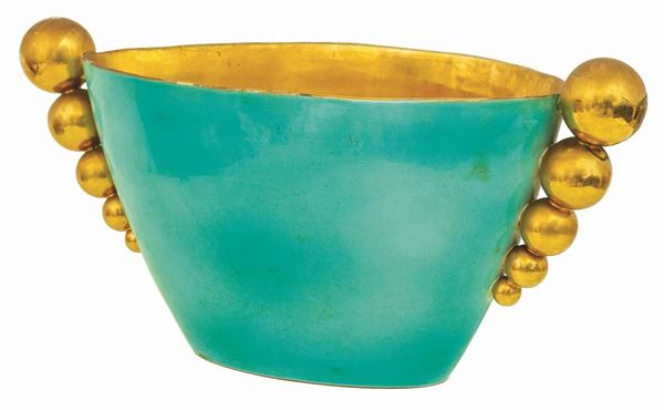 Vaso Decò in ceramica celeste e oro