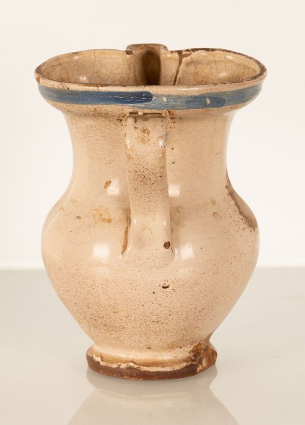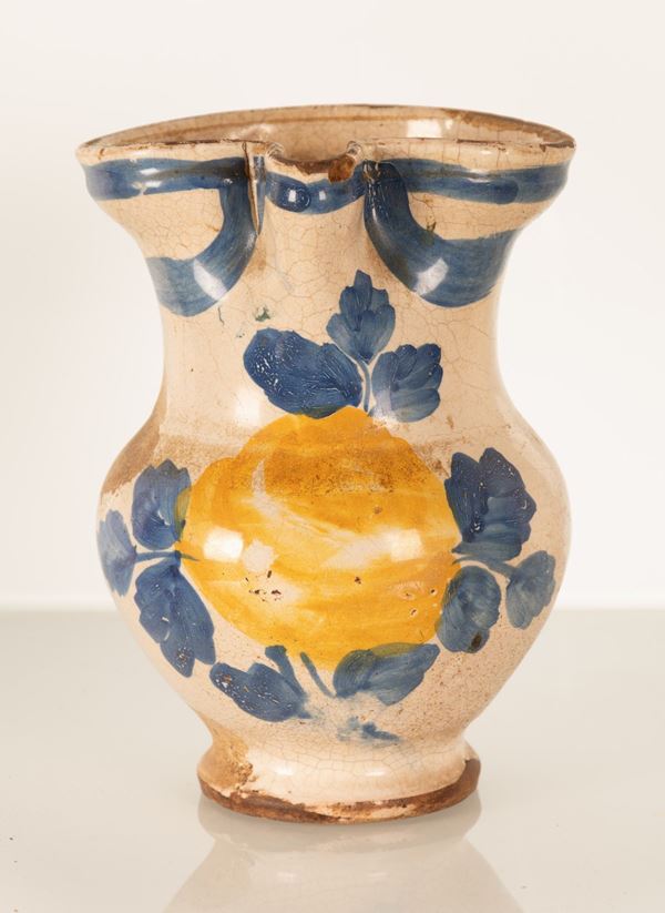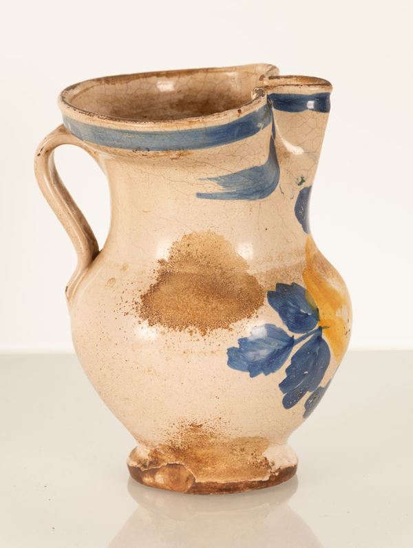Piccola brocca in maiolica con decoro al fioraccio. Manifattura di Palena, fine del XIX secolo